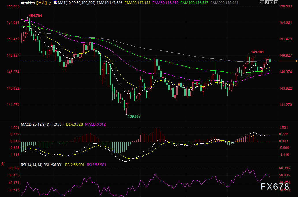另一方面,148.50附近区域以及隔夜波动高点附近的148.80区域现在似乎构成直接阻力。其次是149.00-149.10区域,即月度高点,非常重要的200EMA,位于147.92区域附近。持续站稳200EMA将被视为美元/日元多头的强势,并为重新测试150.00心理关口铺平道路。