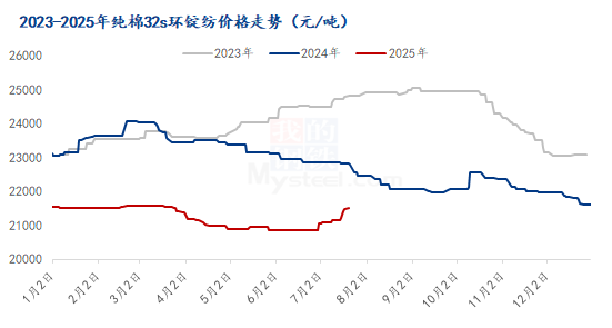3)全国纯棉32s环锭纺均价偏强,整体购销清淡;