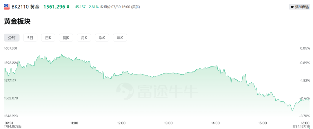 当地时间7月30日,现货黄金大跌超1.5%,失守3280美元/盎司。