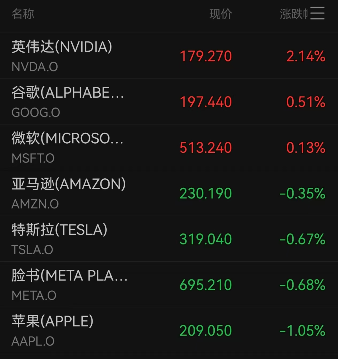 美股热门科技股涨跌不一,英伟达涨超2%,博通涨超1%,苹果跌超1%。