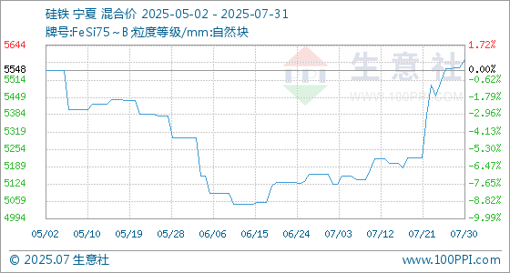 7月31日生意社硅铁基准价为5590.00元/吨