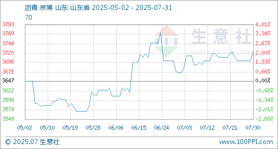 7月31日生意社沥青基准价为3726.67元/吨
