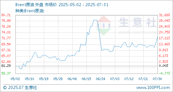 7月31日生意社Brent原油基准价为72.51美元/桶
