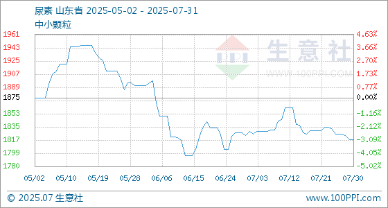 7月31日,生意社尿素基准价为1817.50元/吨,与本月初(1823.00元/吨)相比,下降了0.3%。