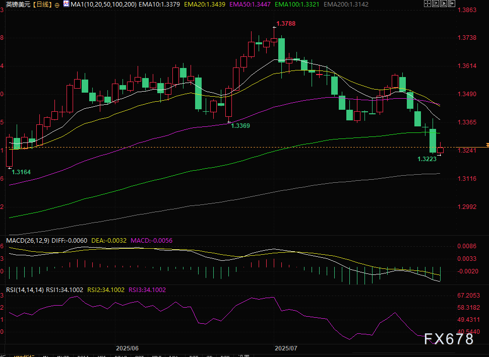 从技术角度看,英镑/美元隔夜跌破100日EMA,这一突破被视为看空头交易者的关键价位,表明短期内市场趋势偏空,增加了进一步下行的风险。