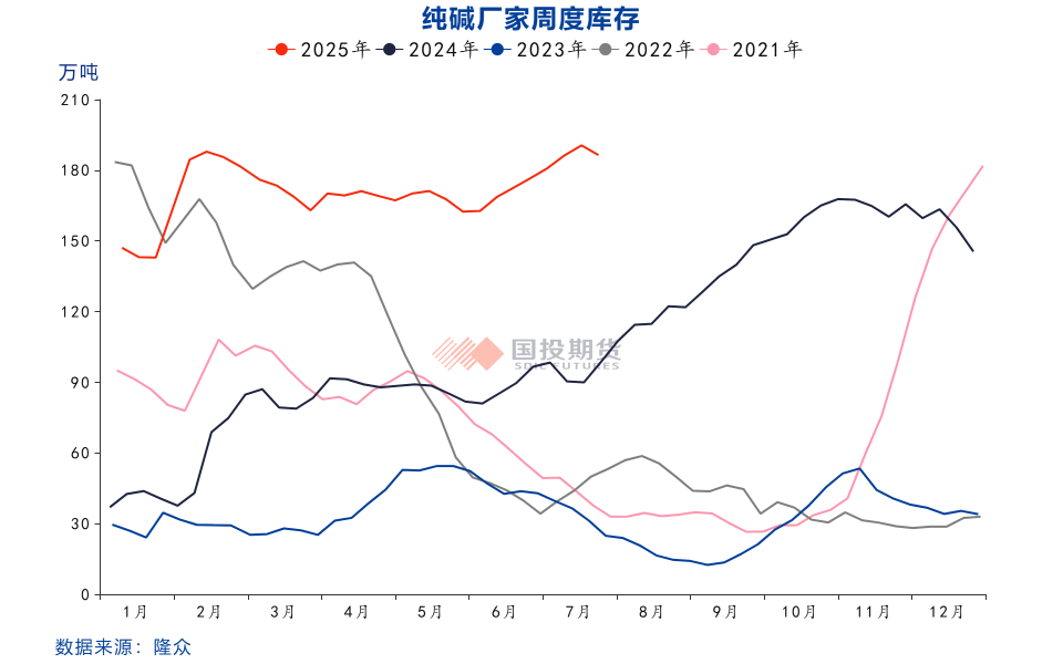 纯碱期现补库,库存由增转降,部分企业出现封单现象,今日银根化工、中源化学、海晶公司轻重碱出厂价格同步上调150元/吨。目前检修企业较少,供给在70万吨以上运行。需求端,由于光伏玻璃亏损,加上反内卷,行业进入去产能阶段,日熔由9.9万吨降至8.8万吨,重碱刚需减少。短期情绪发酵影响较大,长期若淘汰落后产能兑现不及预期,纯碱仍存新增产能投放,供给压力依然较大。