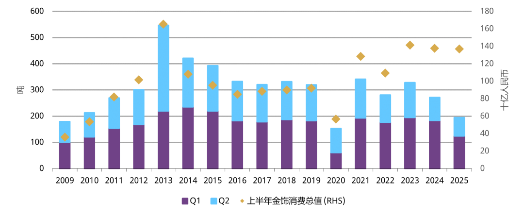 世界黄金协会认为,金饰消费下半年或继续面临消费者信心低迷和金价高企的压力。金饰行业的持续整合趋势需重点关注,可能会持续抑制上游需求。季节性改善及潜在的货币或财政政策支持有望提供一定支撑。