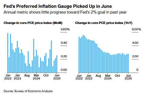 由于已参考CPI、PPI以及周三GDP报告中的季度数据,本次PCE通胀数据基本符合预期。但展望未来,经济学家警告,随着特朗普周五拟宣布新一轮关税计划,且股市上涨维持PCE关键成分高位,未来通胀可能面临更大上行压力。