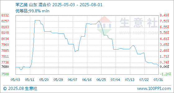 8月1日生意社苯乙烯基准价为7694.00元/吨