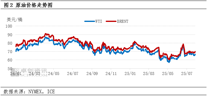 本月油价整体呈现窄幅震荡的行情,整体波动较小,美原油主流波动区间65—69美元/桶。6月中东风险释放之后,一直相对太平,市场关注度降低,转而关注美国贸易谈判和沙特增产等问题。美国先后和日本,欧洲等达成贸易协议,虽然日本和欧洲等让步较大,但是达成后市场宏观情绪转暖,加之中美也在积极和谈,这些都为原油价格提供了较强的底部支撑。但是沙特带领的欧佩克+组织继续加大增产节奏,美国夏季需求高峰去库一般,基本面形成拖累,限制了油价的上方空间。因此,市场静待贸易谈判,石油库存基本稳定,原油价格保持窄幅波动行情,对沥青现货价格缺乏明确的方向指引。