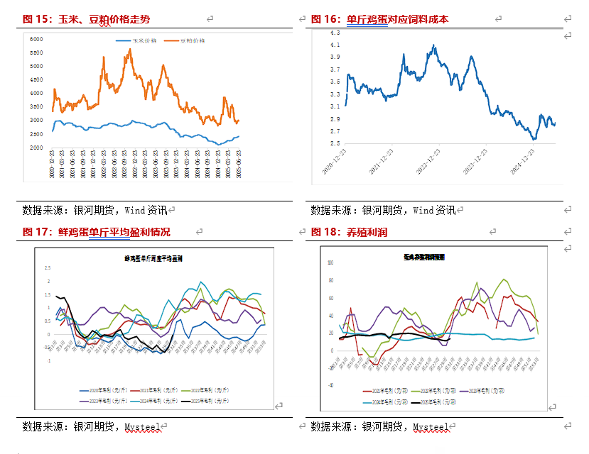 饲料成本方面,2025上半年年单斤鸡蛋对应的综合饲料成本大概在2.8元/斤附近,目前玉米豆粕价格变化不明显,预计饲料成本大概率在当前水平维持,对鸡蛋现货价格形成一定支撑。