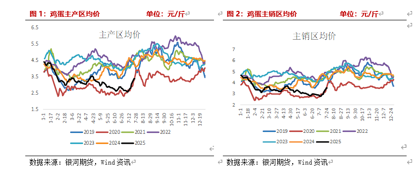 现货方面:7月鸡蛋现货价格走势先弱后强,前期主产区均价最低下跌至2.57元/斤附近后随着梅雨季的结束有所上涨,目前上涨至3.38元/斤附近后有所企稳;主销区跌至2.79元/斤附近后回升至当前3.52元/斤,随着开始逐渐进入旺季消费,市场淘汰积极性有所下降,使得鸡蛋供应仍有一定压力,预计在鸡蛋供应大幅增加的背景下鸡蛋现货价格预计向上空间有限。
