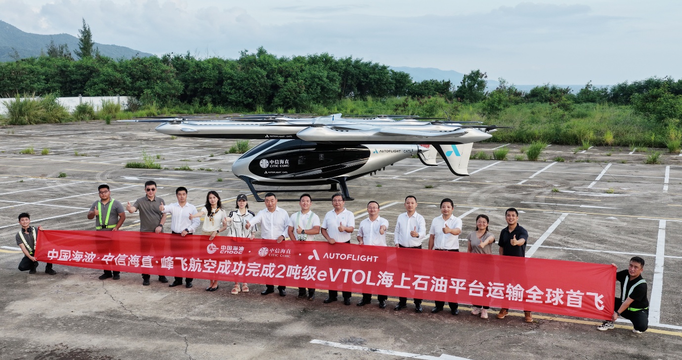 中信海直统筹协调完成全球首次2吨级eVTOL海洋石油平台飞行