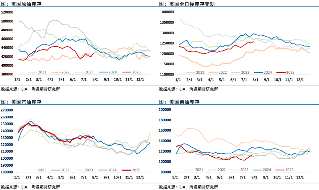 接下来一段时间,原油市场供需二侧的博弈进入非常关键的阶段,这可能决定2025年剩余阶段的运行空间。美国数据已经再次引发了对经济层面的担忧,欧佩克+提前一年完成提速增产更是对油价给予了极大的压力,这是一个明确的利空因素。接下来市场需要等待升温的美俄摩擦的靴子落地,特朗普是否决心对俄顶格制裁,对冲供应端欧佩克+提速增产带来的压力,另外美国在关税决定方面的决定对需求端的影响同样需要时间来明朗,关注资金综合评估后的押注,下周油价将继续保持高波动特征,注意节奏把握。