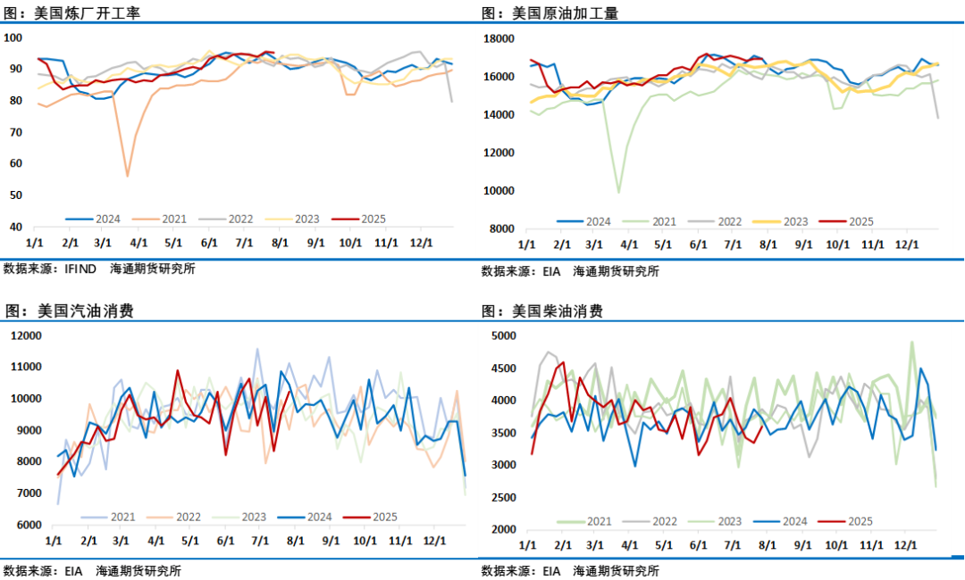 高频指标本周的表现分化,受到美国可能对俄罗斯制裁带来的供应担忧,月差在过去一周走强,对供应潜在中断的担忧还是在其中得到体现,但是欧洲柴油裂解差连续第二周快速回落,已经接近去年同期水平,需求端给油价带来的季节性支撑在减弱。对于油价来讲下周市场将会综合衡量欧佩克+增产及特朗普对俄罗斯最终制裁带来的冲击,高波动将会继续。