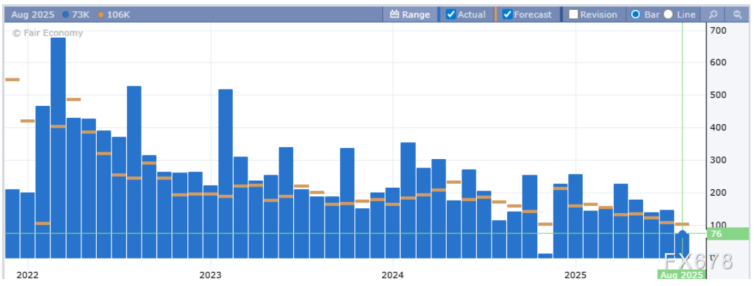 最新美国非农就业报告显示,7月新增就业仅7.3万人,远低于预期的10.6万人,且前值大幅下修25.8万至3.3万。5月份数据下修12.5万,从+14.4万下修为+1.9万。6月份数据下调了13.3万人,从+14.7万人下调至 +1.4万人。这一巨大的“统计回摆”已经超出了常规的季节性调整范畴。这是自新冠疫情以来最大幅度的向下修正。