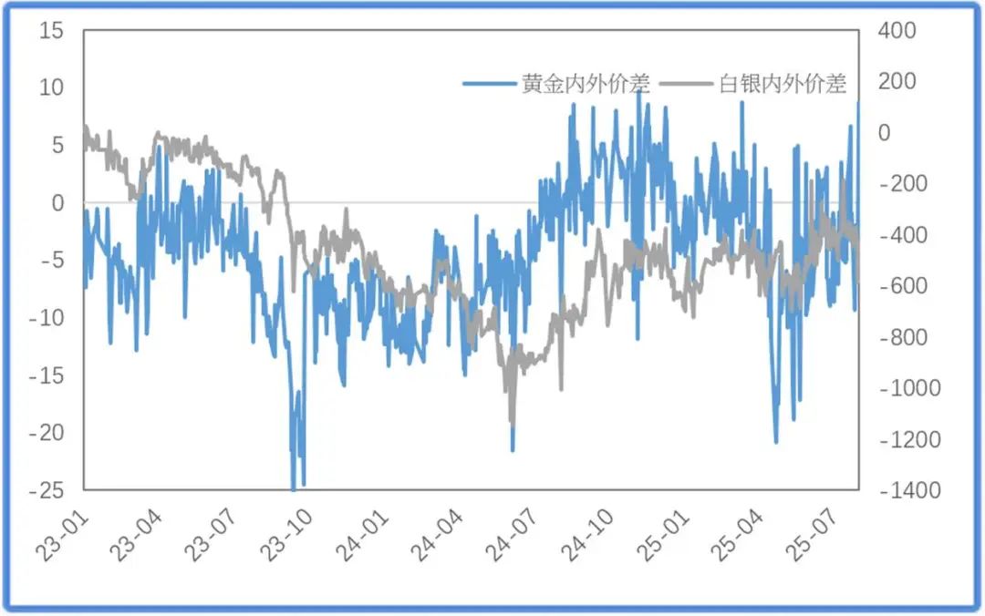 近期人民币汇率影响较前期增强,上周黄金内外价差及内外比价有所回升,白银内外价差及内外比价同样有所回升。