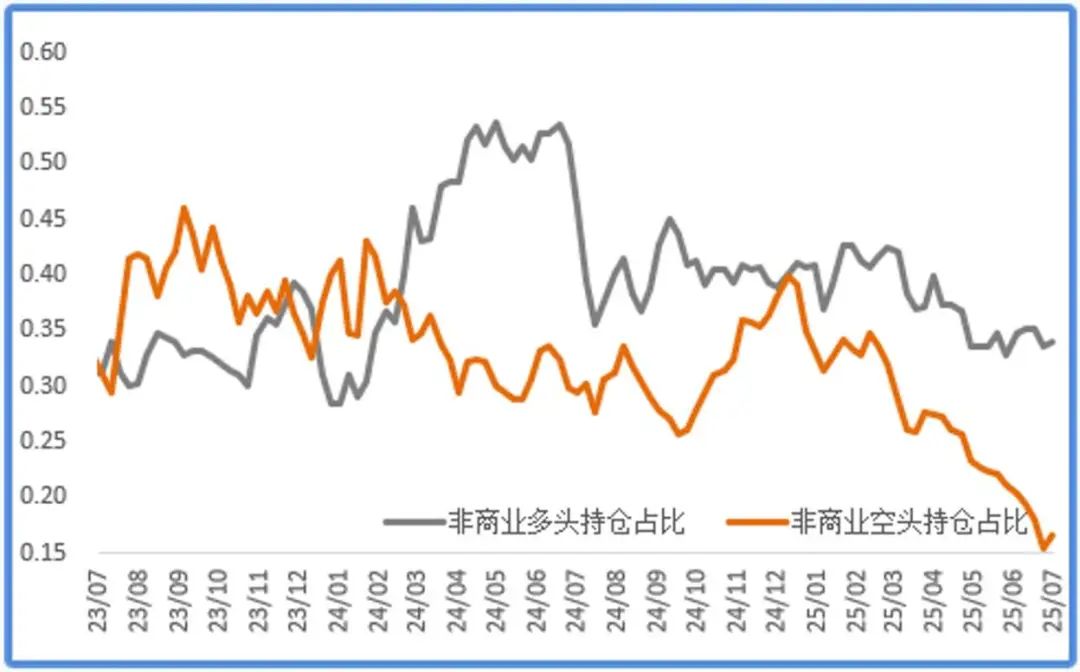 持仓方面,从CFTC持仓来看,上周非商业空占比继续低位徘徊,目前空头持仓占比回到了历史低位区间,单从持仓来看,似乎仍然由多头进行主导。