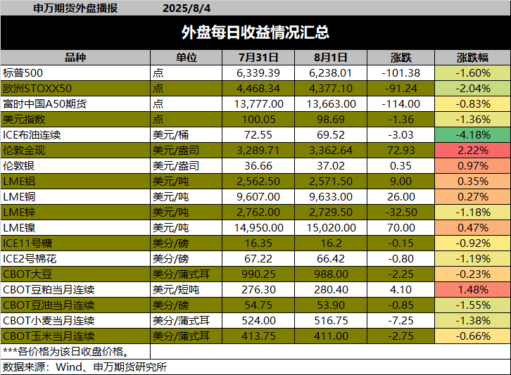 非农大幅下修,原油回落:申万期货早间评论-20250804