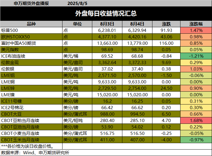 市场评估美联储降息概率,外盘股价收涨:申万期货早间评论-20250805