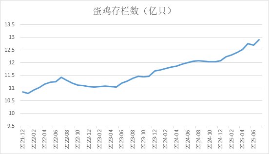 另外,7、8月新增开产蛋鸡是3、4月前后补栏鸡苗,而此阶段是春季补栏旺季,养殖端补栏情绪尚可,对下半年蛋价仍有预期,故而,总体补栏相对偏高。从老鸡淘汰情况看,受7月中旬蛋价涨势迅猛拉动,养殖端对8-9月份行情期待值再度提升,多存压栏惜售情绪,淘汰意愿减弱,进而使得7月老鸡出栏量减少明显。结合新开产蛋鸡和老鸡淘汰情况来看,新开产数量大于老母鸡实际出栏量,在产蛋鸡存栏量环比增加。据mysteel数据显示,7月全国在产蛋鸡存栏量约为12.92亿只,环比增幅1.73%,同比增幅7.04%。再度刷新历史新高。高存栏压力下,降低市场对旺季蛋价的预期。不过,在季节性补栏淡季以及现货价格持续偏低,养殖利润亏损引导下,补栏情绪较差,7月蛋鸡苗销量继续下滑,进而降低年末新开产压力,对远月合约价格有所利好。2601合约并未随近月合约下跌,反而略有收涨。