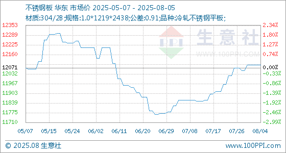 8月5日生意社不锈钢板基准价为12092.86元/吨