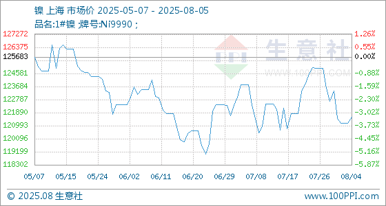 8月5日生意社镍基准价为121600.00元/吨