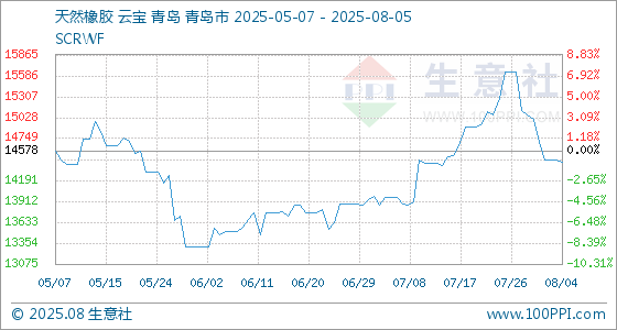 8月5日生意社天然橡胶基准价为14433.33元/吨