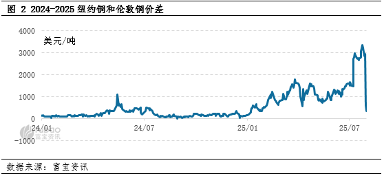 因此此次价格下跌主要表现在价差的修复,对LME铜价和沪铜影响较小。而且从供应端分析,参考去年的美国电解铜的进口量,当前其铜供应严重过剩;具体数据方面:2025年上半年美国进口量为86.4万吨,而2024年同期仅为35万吨,同比增量51.4万吨,增幅达147%。因此从当前跨地域的交易,以及当前纽约铜的基本面的现状。此次影响更多是其国内情况,而地区价差仅仅是修复至关税前的状况。因此LME和沪铜没有跟跌COMEX铜价持续下跌。