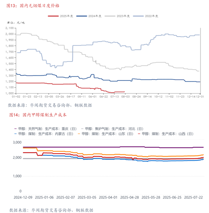 下旬开始,受“反内卷”影响,原料端利好明显,成本提升预期较强,甲醇价格大幅冲高。但随着宏观面影响减弱,原料端支撑松动,甲醇期货价格高位回落。