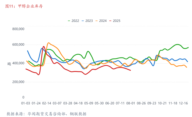 8月内蒙古新奥、宁夏宝丰一期、陕西长武、陕西长青、华鲁恒升等企业装置将陆续进入停车检修阶段,检修装置重启与新增检修装置停车的对冲作用下,供应端的整体波动不大,仍处于偏紧缩状态。