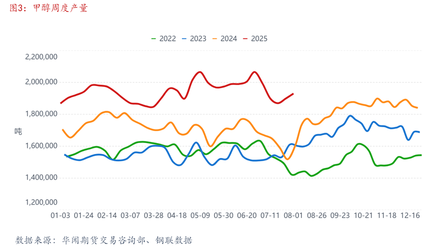 7月我国甲醇装置产量为862.08万吨,较上月减少0.08万吨,环比下降0.01%(图3)。由于较6月多一天,因此产量减少有限。