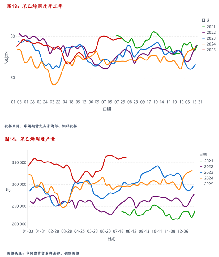 时间进入八月后,国内纯苯开工将上行,港口库存预计仍旧难以大幅去化,成本端企稳较难,苯乙烯港口库存预计高位震荡变化,供应趋于宽松。需求端,下游3S维持刚需水平,四季度需求对苯乙烯转暖,家电出口及内需拉动ABS及PS刚性需求仍维持稳定,库存短期内去化较为困难。