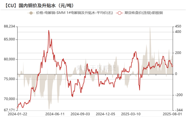 随着特朗普宣布并不对精炼铜加征关税LC价格快速从3000美元归零,而CMX铜价回落之际,也拖累LME价格走势,但由于本轮下跌以修复LC价差为主,LME整体波动有限,加之国内铜价抗跌,上周五晚的行情如我们预期。预计铜价短期依然维持在箱体9500-10000美元之间。
