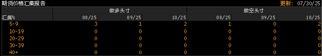 从7月29日的CFTC持仓来看,非商业多头与空头持仓占比分别为32.7%、16.3%,多头减少1.3%,空头减少0.3%,市场主动性有所下降。