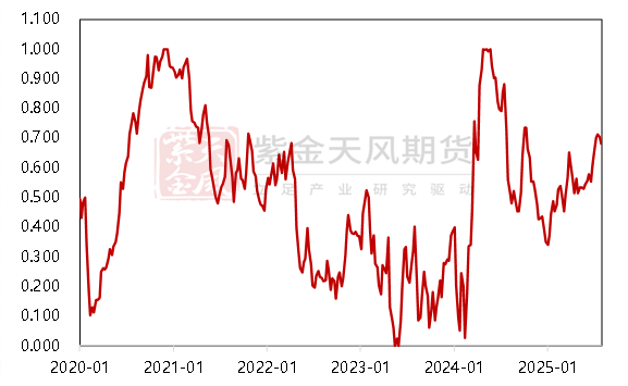 非商业净多头持仓为37347张,COT指标0.68,铜价强势略有减弱。