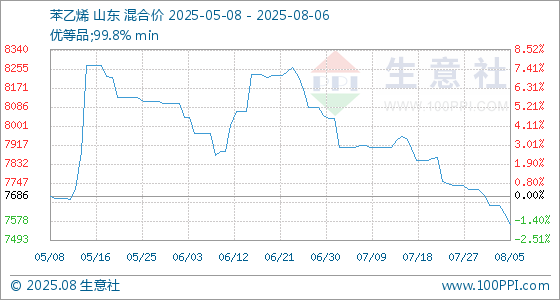 8月6日生意社苯乙烯基准价为7564.00元/吨
