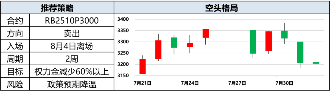 策略:螺纹钢卖出虚值看跌期权头寸RB2510P3000离场。铁矿继续持有9-1正套头寸。