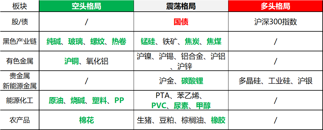 关注品种:螺纹(空头格局)、热卷(空头格局)、铁矿石(震荡格局)、焦煤(震荡格局)、纯碱(空头格局)、玻璃(空头格局)