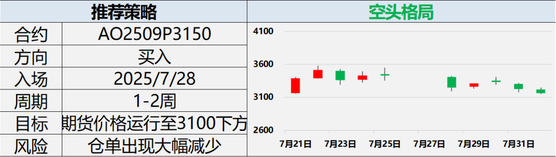 纯碱/玻璃:由于上半年检修较多,纯碱7-8月检修计划不多,本周纯碱日产再度回到10万吨以上。刚需变化不大,投机需求短暂释放后降温。纯碱供过于求,上游碱厂被动的格局并未发生实质性变化。玻璃基本面仍相对强于纯碱,本周玻璃厂延续去库。但随着预期交易结束,沙河湖北两大交割地基本完成投机补库,且下游订单偏弱,暂无明显投机需求,投机需求整体明显降温。地产竣工周期延续下行趋势,下游补库驱动不明显。总体看,市场回归基本面定价逻辑,但本周纯碱、玻璃价格累计跌幅已较大,且反内卷长期逻辑并未被证伪,预计下周二者或延续偏弱走势,单边策略胜率赔率均有限,继续耐心持有买玻璃01-卖纯碱01的套利策略。
