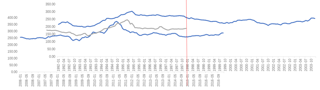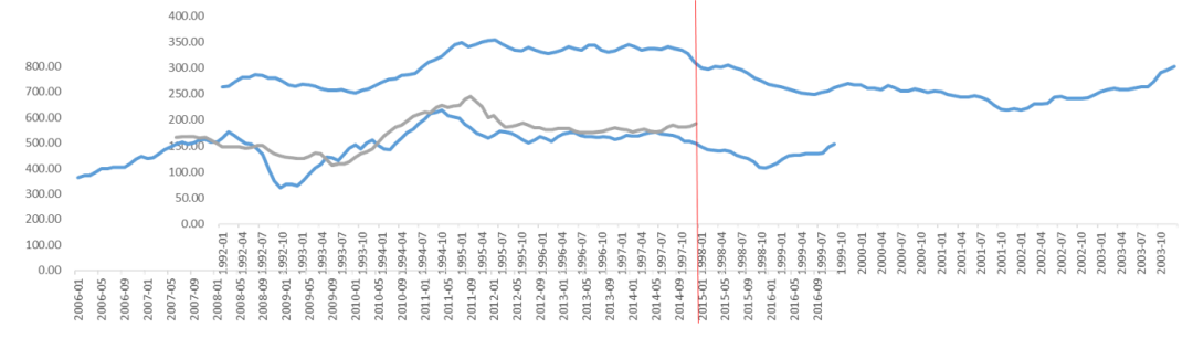 1992年-2001年的去产能周期,主要是从纺织品压锭入手,因此价格周期呈现于工业品同步。