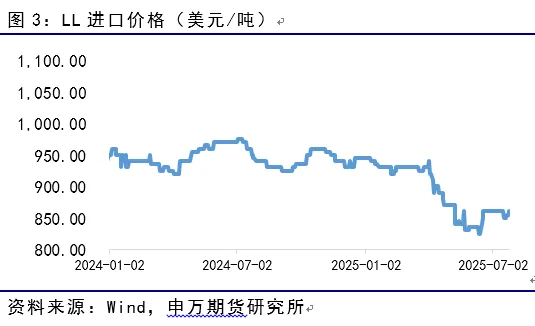 LLDPE,CFR进口目前报价861美金,进口价格环比6月回升。
