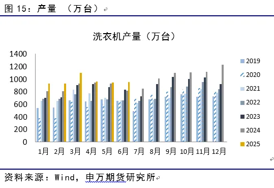 拉丝PP下游的编织袋塑编开工率总体处于低位。6月的冰箱产量达到904万台,同比增加53万台。洗衣机产量6月产量950万台,环比上升9万台。