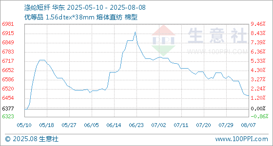 8月8日生意社涤纶短纤基准价为6474.83元/吨
