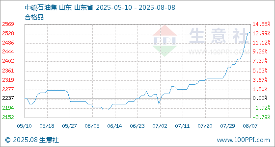 8月8日,生意社石油焦基准价为2535.00元/吨,与本月初(2390.00元/吨)相比,上涨了6.07%。