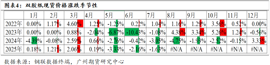 胶板印刷纸下游当中,教材教辅占比最大,而教材教辅行业的旺季较为明显。通常3-4月为秋季教材备货期、9-12月为春季教材备货期,通常在该时间段双胶纸价格会出现上涨。下游在1-2月春节停工、5-7月需求平淡,此时胶版印刷纸的价格多数出现下降。
