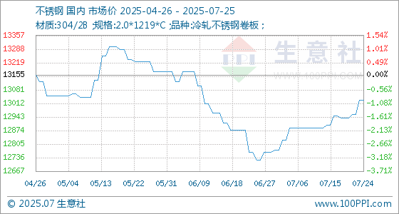 7月25日生意社不锈钢基准价为13030.00元/吨