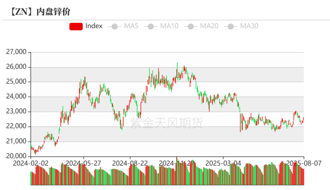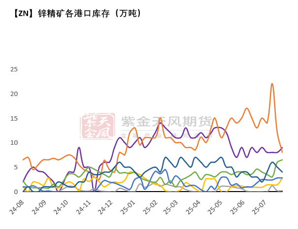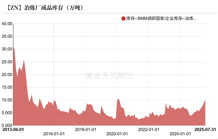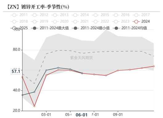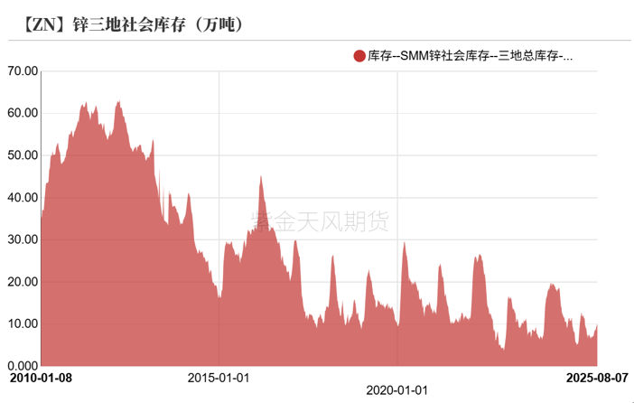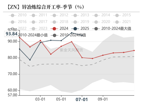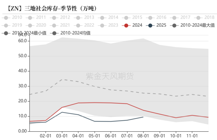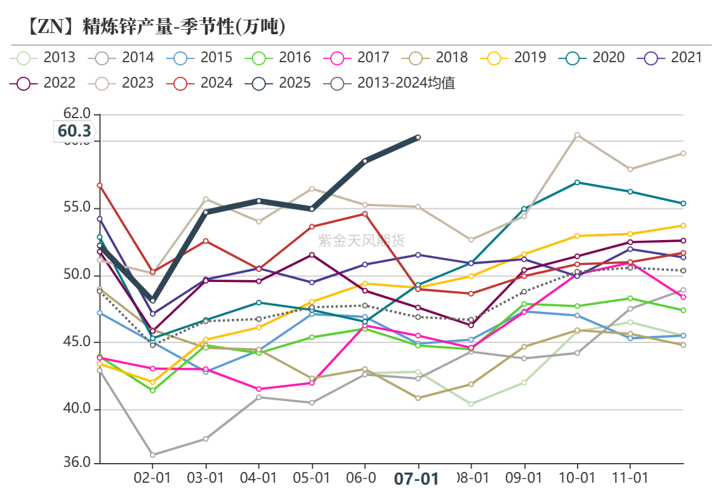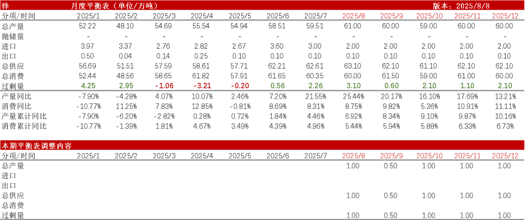 预计2025年8月精炼锌产量环比增加约1.5万吨。