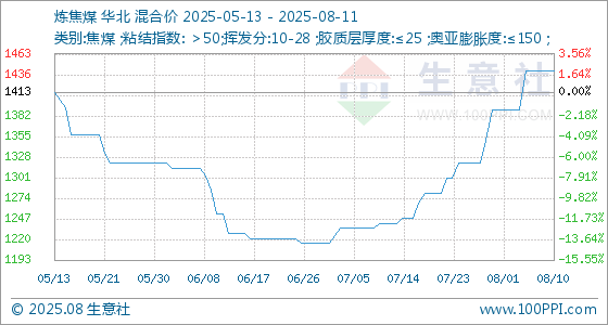 8月11日生意社炼焦煤基准价为1441.25元/吨