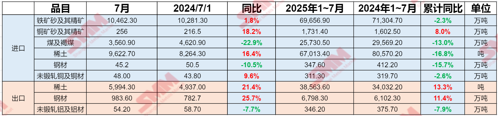 SMM根据海关总署公布的数据整理了金属行业部分产品进出口情况,具体如下: